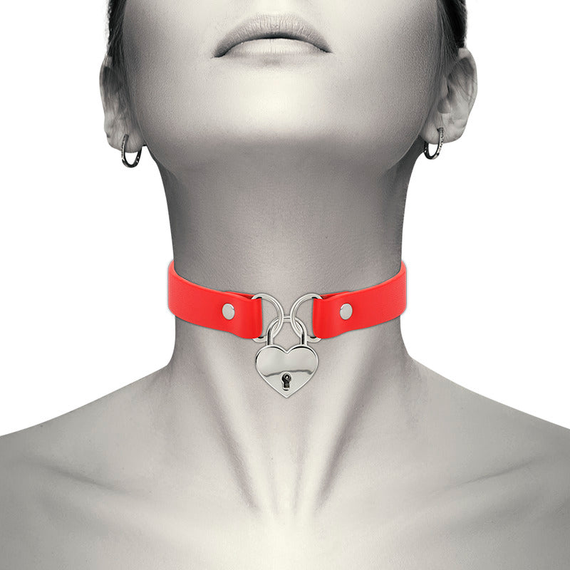 Collare in pelle vegana rosso con lucchetto a forma di cuore